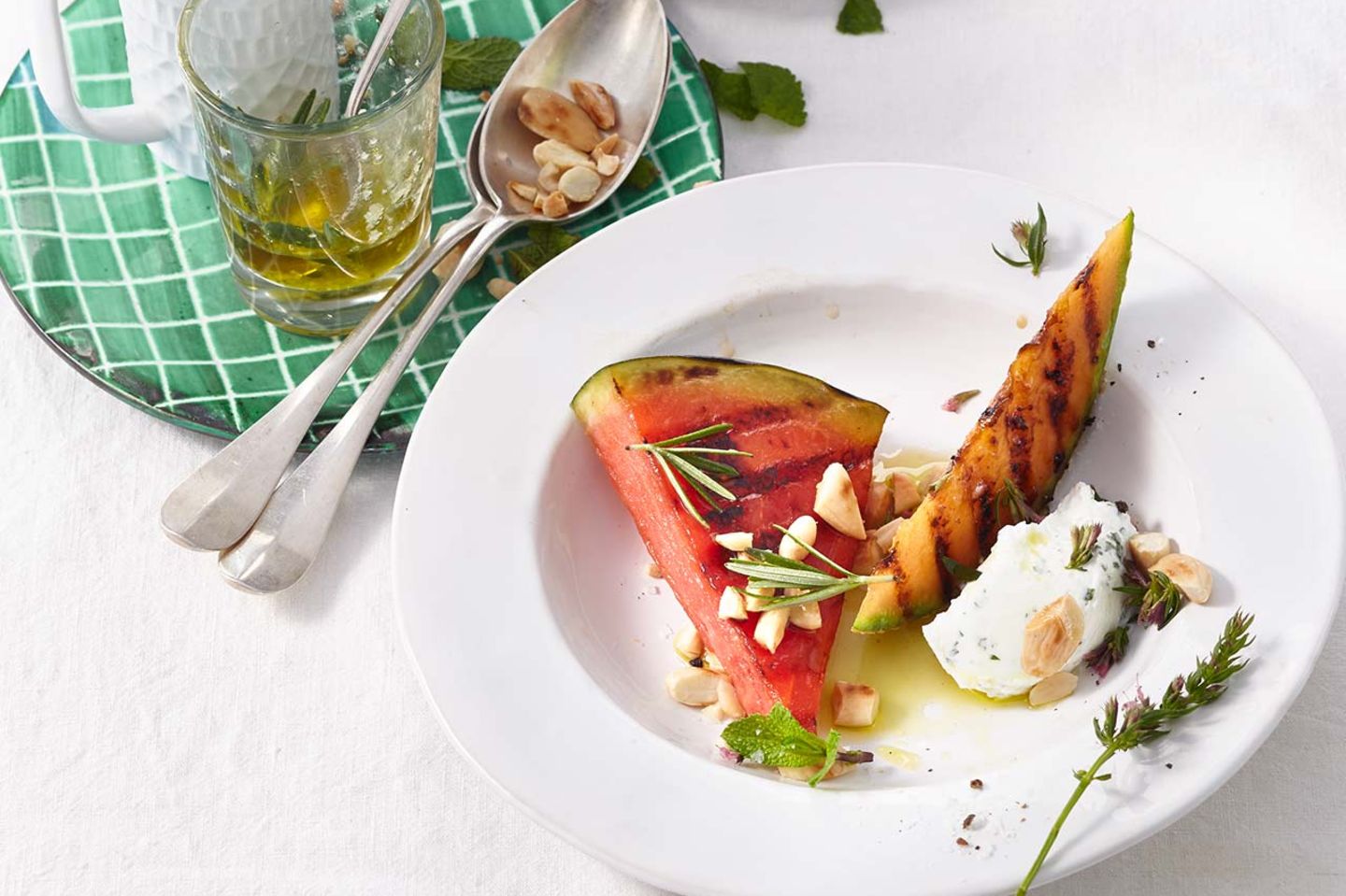 Gegrillte Melone Mit Minzquark Und Rosmarinol Rezept Essen Und Trinken